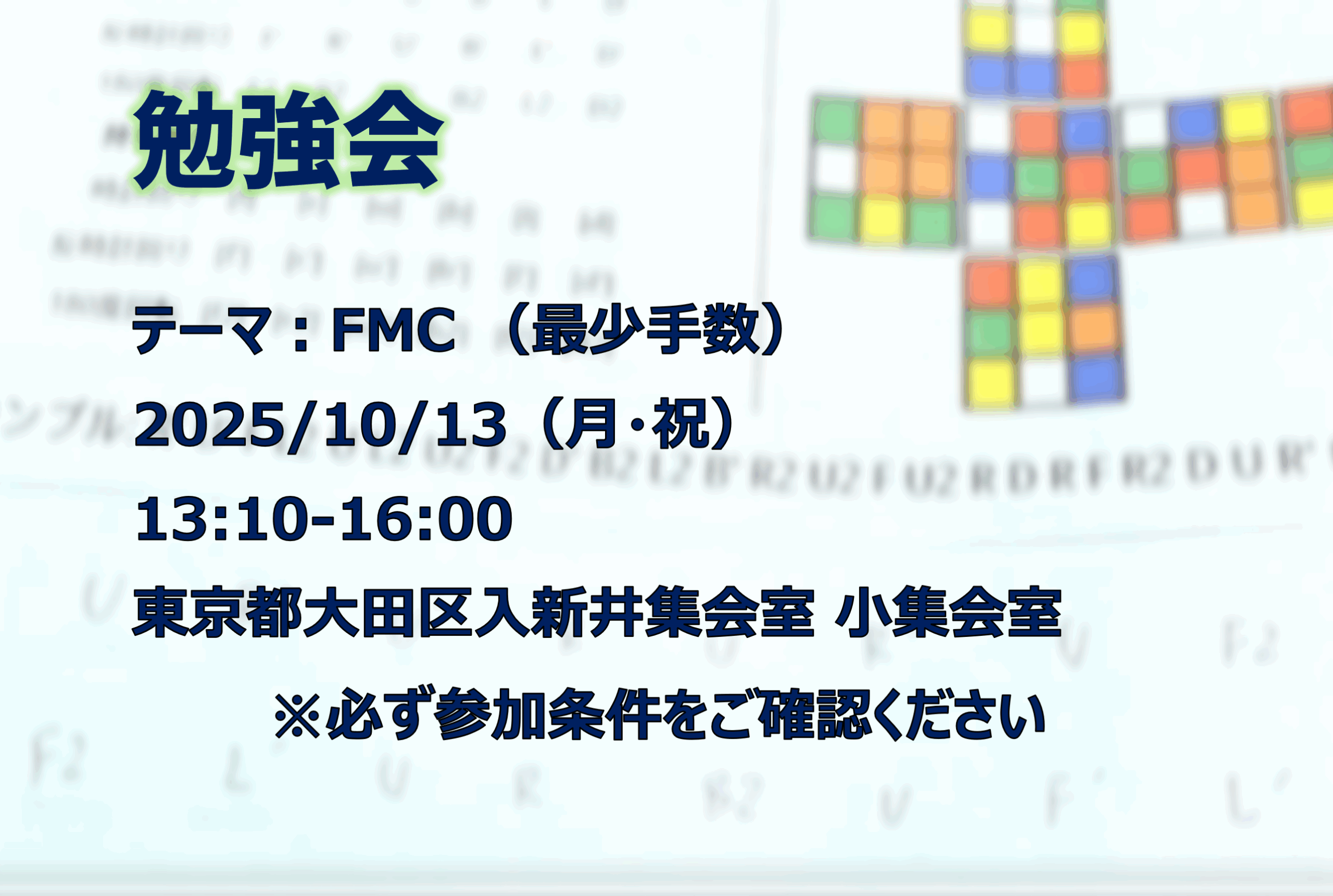 (1)WCA大会の3x3x3キューブ等に何回か出たことがあり、「FMCという競技があるのは知っていて面白そうだけど、始めるキッカケがない。是非やってみたい。」と思っている人