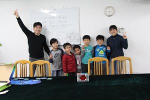 さらに、今回は全員でキューブアートに挑戦。6つのキューブを合わせて「日の丸」を作りました。次回以降も、記念撮影時にキューブアートを作りますので、アイデア(9×9位のドット絵)を大募集します!