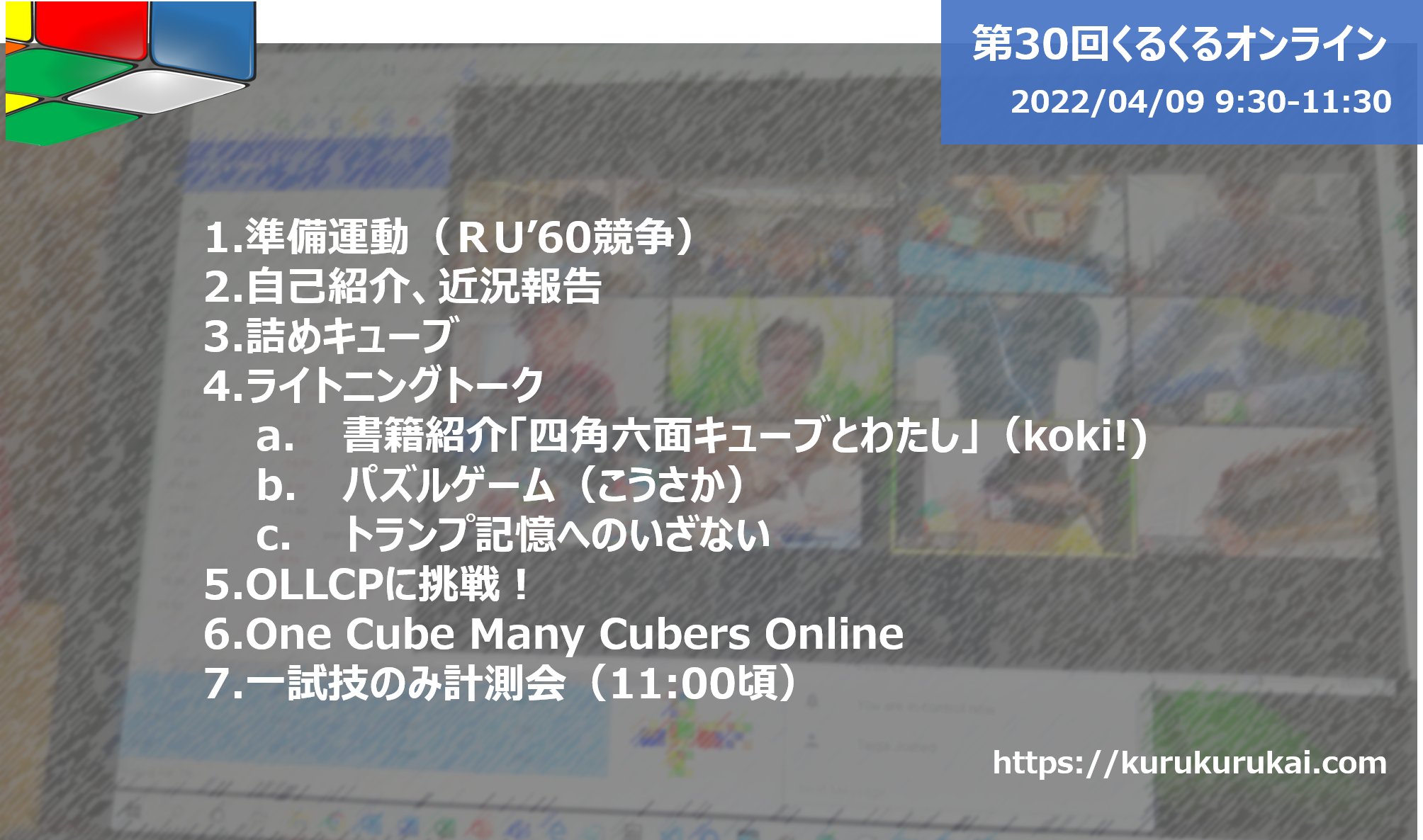 One Cube Many Cubers online。オンラインでみんなでワイワイ言いながら一手づつそろえていく企画です。
