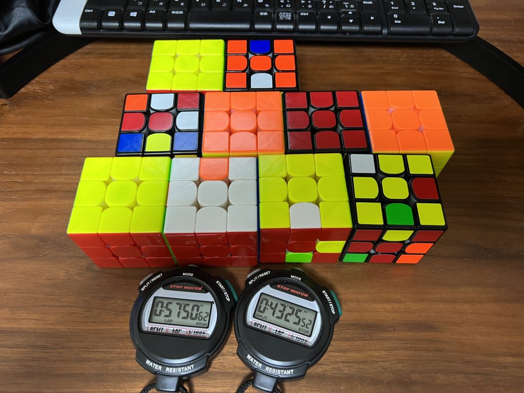 第26回MBLD&4BLD計測会結果 (スピードキューブ複数目隠し競技、5x5x5目隠し競技) 01m_MBLD計測会こうさか 2022.05.21 目次 概要計測結果MBLD5BLD今までの全計測結果 概要 2022/5/21(土) 9:30~11:30、zoom 計測結果 MBLD # 挑戦個数 成功個数 ポイント タイム こうさか 2 2 2 8:13(全成功!) くるくる 10 5 0 57:50 sakaki 8 0 -8 27:31 こうさか くるくる sakaki 5BLD # 試技番号 タイム sakaki 1 DNF くるくる 1 DNF くるくる sakaki 今までの全計測結果 MBLD全記録4BLD全記録5BLD全記録