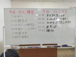 主催者であるくるくるキャプテンが諸事情により会場に向かえないという状況の中、運営メンバー(九大ルービックキューブサークルのメンバー、コウサカさん、