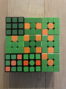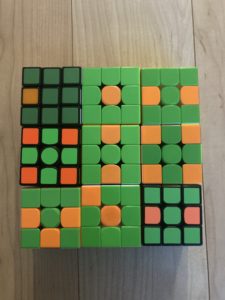 今回のモナリザの設計図は緑部分が多いです!(ラッキーゾーン) この部分はキューブを回さなくても良いです! (キューブができない人も参加できる?)
