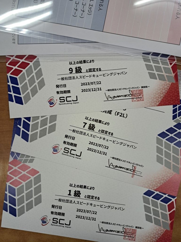 今回は一般財団法人スピードキュービングジャパンが今月から始めた「スピードキュービング段級位基準」を使って技能の認定も行いました。参加した児童10名のほとんどがパズルを触ることが初めてだったにも関わらず、1級(手順書を見ながら6面完成)が3名、7級(手順書を見ながら水平中断完成)が7名と素晴らしい成績を収められました(パチパチパチ!)。 今回もたくさんの笑顔を見ることができ、とても楽しい時間を過ごすことができました!ありがとうございました! とても良かったので近日中に大田区の公民館で集合型くるくる会(段級位認定会)を開催したいと思います。くるくる会のHPでアナウンスしますので是非チェックしてください!
