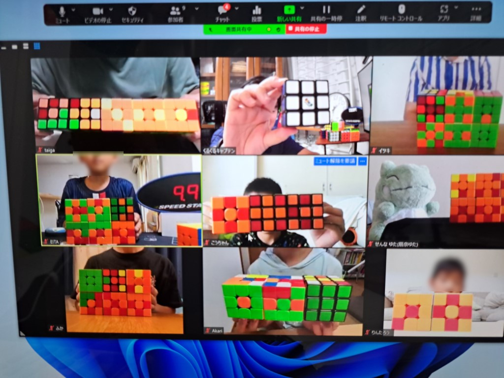 01o_くるくるオンライン全国・全世界のみんなで一万個のキューブアートを完成させよう! の企画を加速させるために企画された臨時くるくる会、9名のキューバーに参加いただき、無事モナリザの顔部分を完成させることができました!