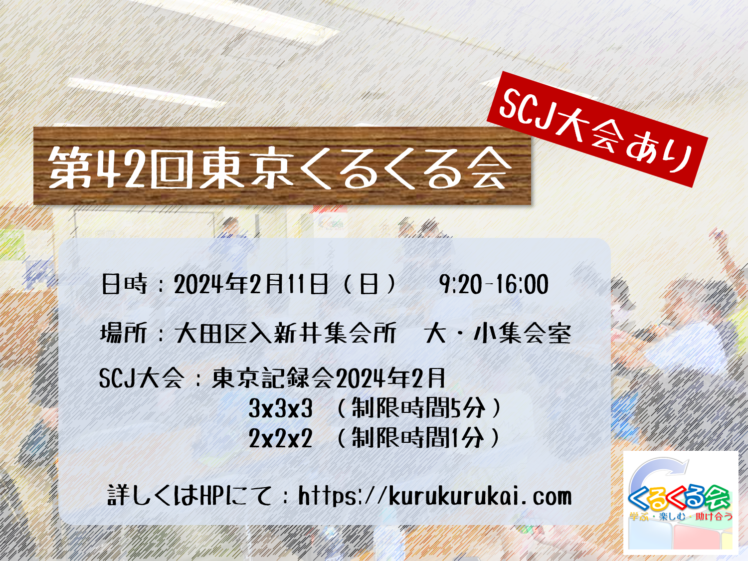※【申し込めなかった皆さまへ】スピードキュービング熱の高まりにより、ここ数回の東京くるくる会への申し込みが殺到しております。開催形態を工夫するなどして、より多くの方がスピードキュービングを楽しめる場所を提供させていただきたいと考えておりますが、現時点で良い解決策は見つかっておりません。ご理解いただければ幸いです。