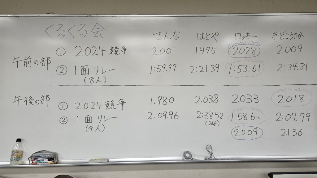 次回は9月の開催を予定しています。開催通知はくるくる会のホームページを通じて行いますので、参加をご希望されている方は定期的に確認をしておいていただけると幸いです(スピードキュービングの人気の高まりにより申し込みが殺到していますことをご留意いただければ幸いです)。